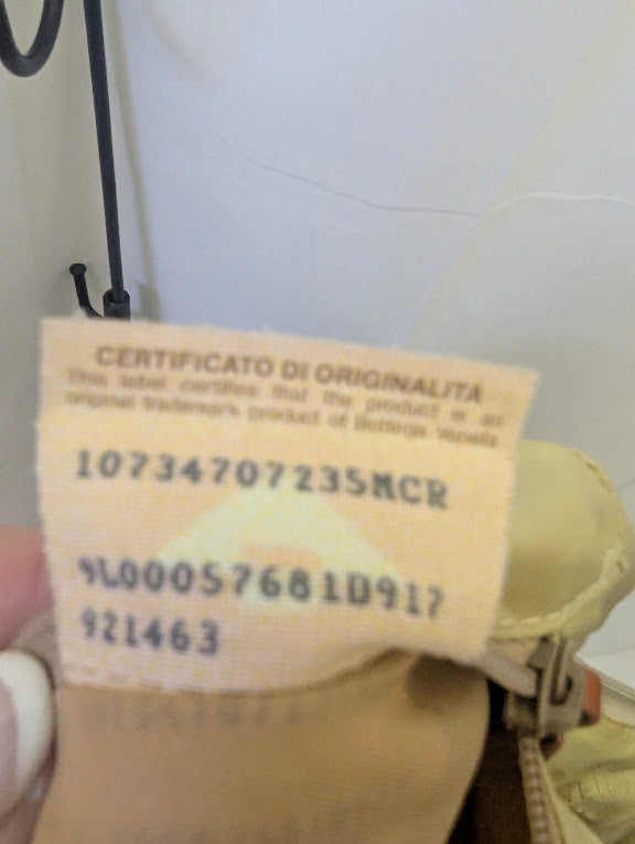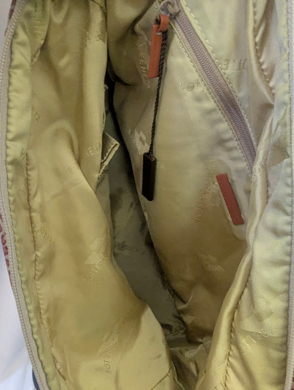 - Interior: Good+ — clean beige silky lining with BV logo print
