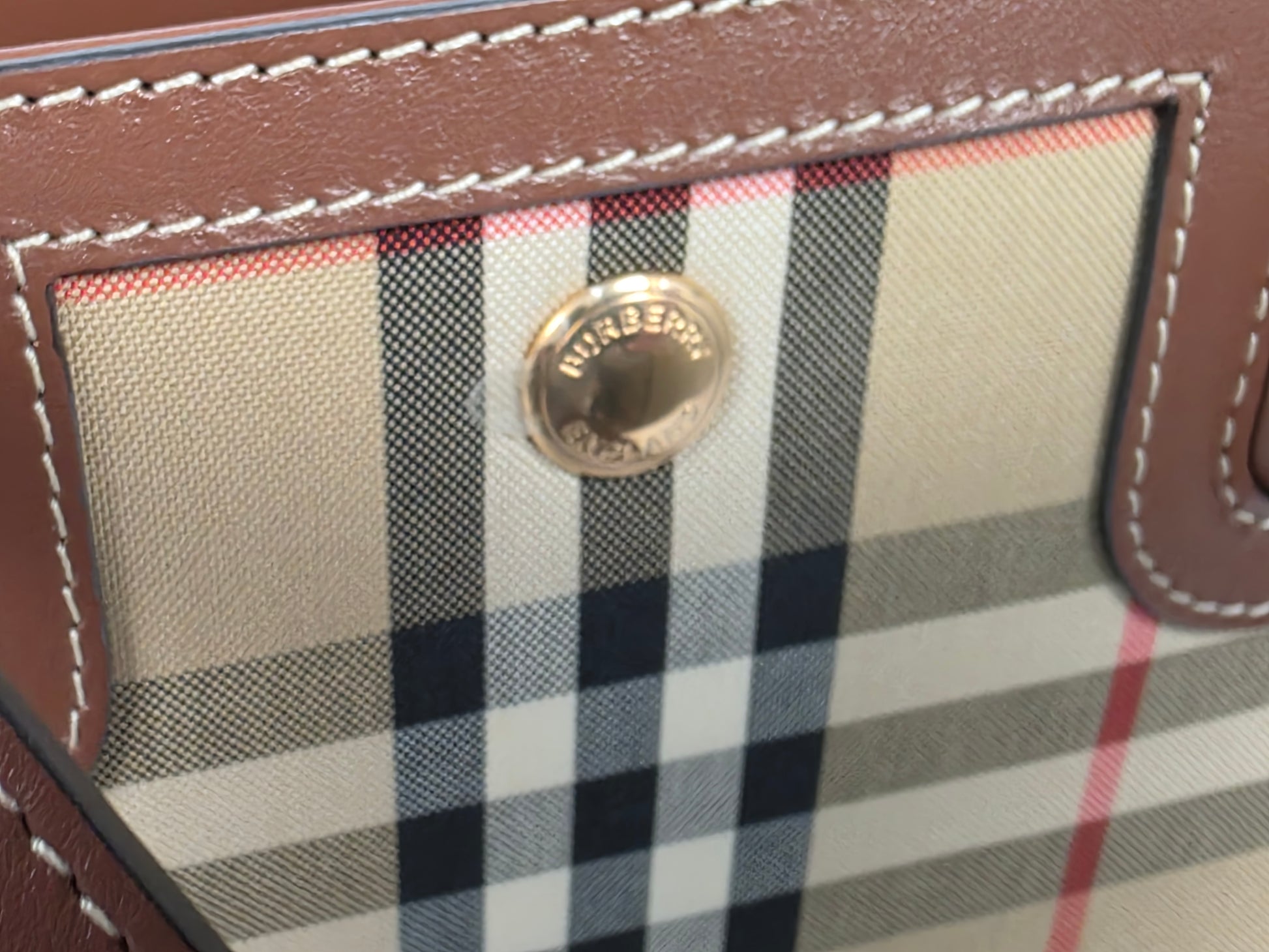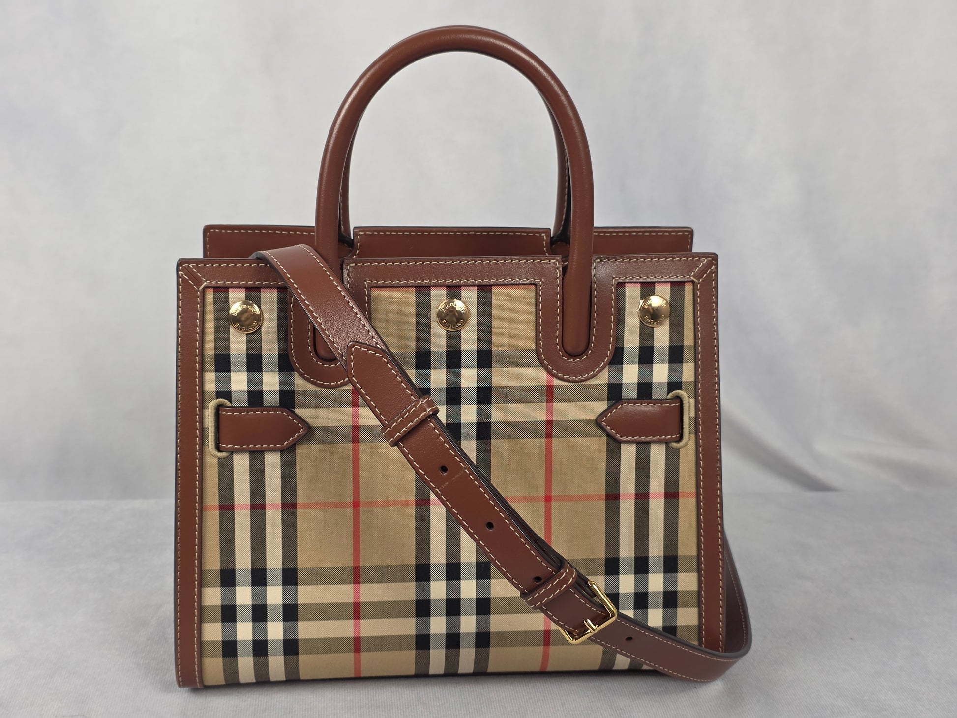 Burberry Title Two Handle Vintage Check Canvas and Leather Mini Tote Bag, LIKE NEW