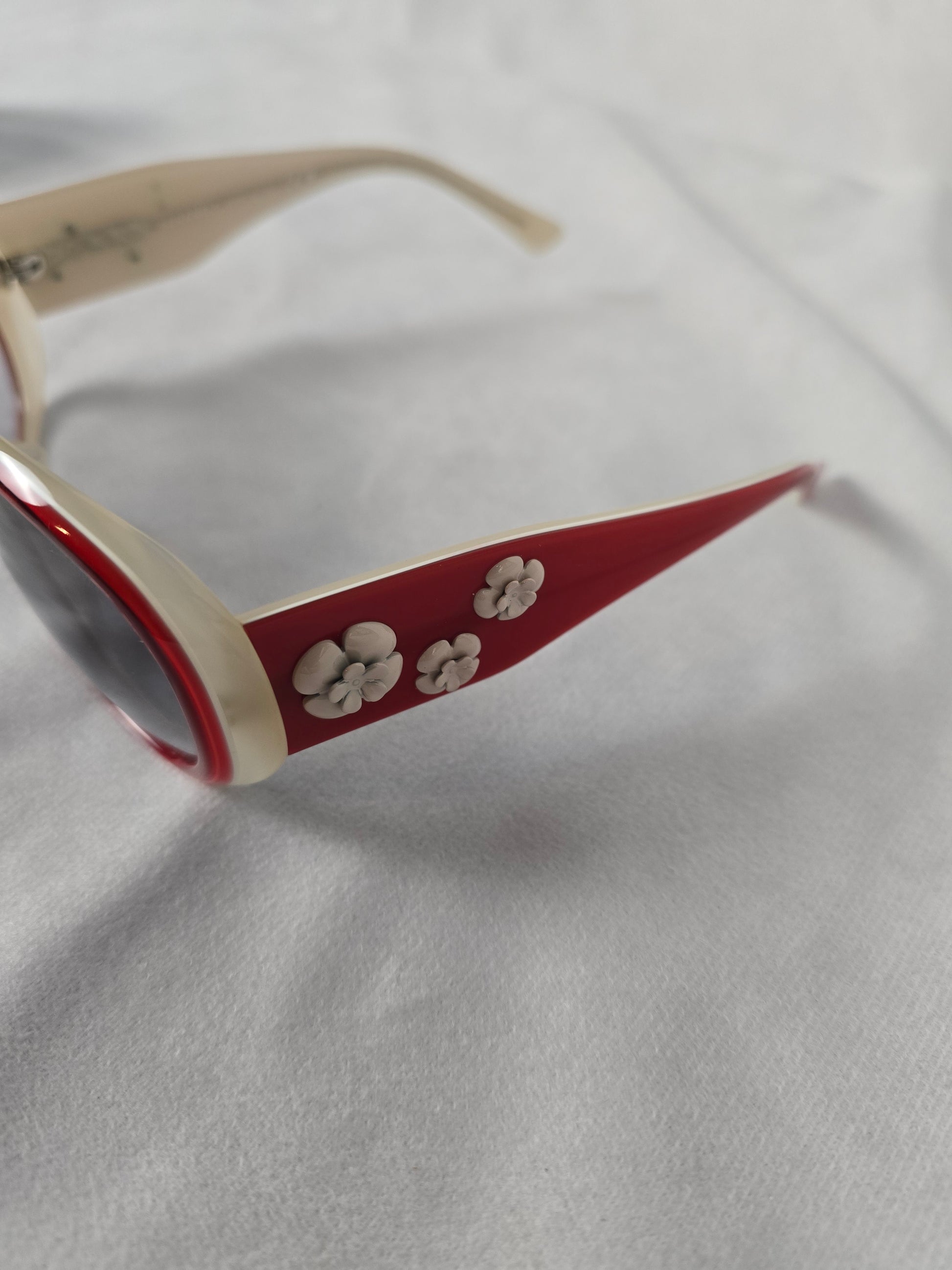 Turn heads in these stunning Chanel Camellia Flower red sunglasses. In very good pre-owned condition. Comes with Chanel case that shows corner wear on the sides. See photos.
