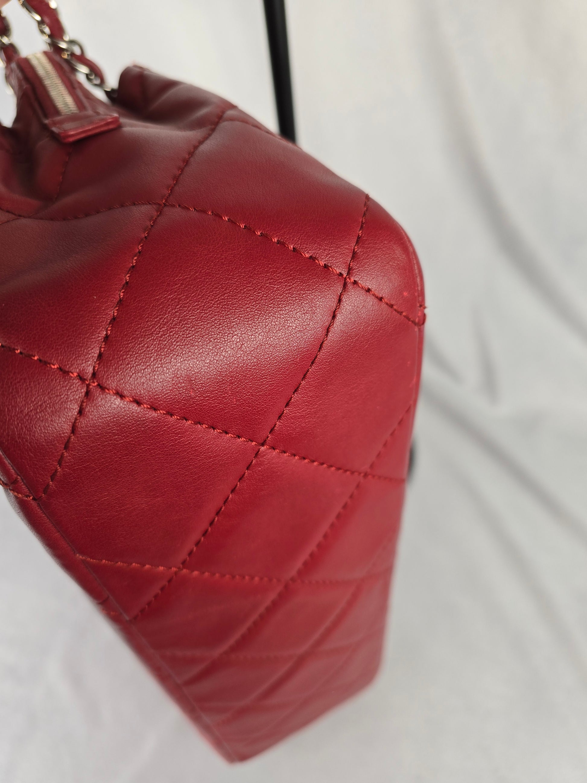 Chanel Red Quilted In-The Business Large Camera bag in excellent condition. Calfskin leather with no flaws and a clean interior.