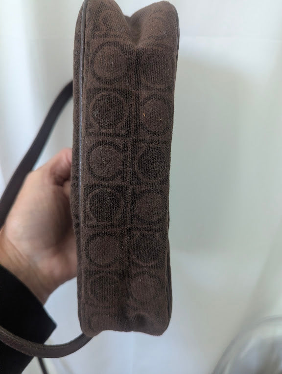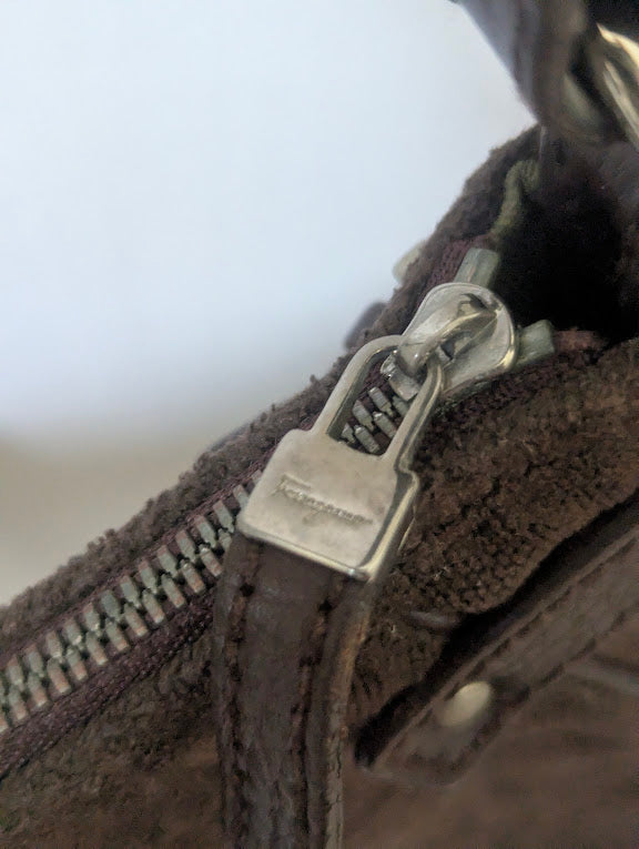 Elevate your collection with this elegant Ferragamo shoulder bag, crafted from beautifully embossed brown suede. Its compact silhouette and rich texture create a timeless, refined look, while the included box makes it perfect for gifting or preserving.