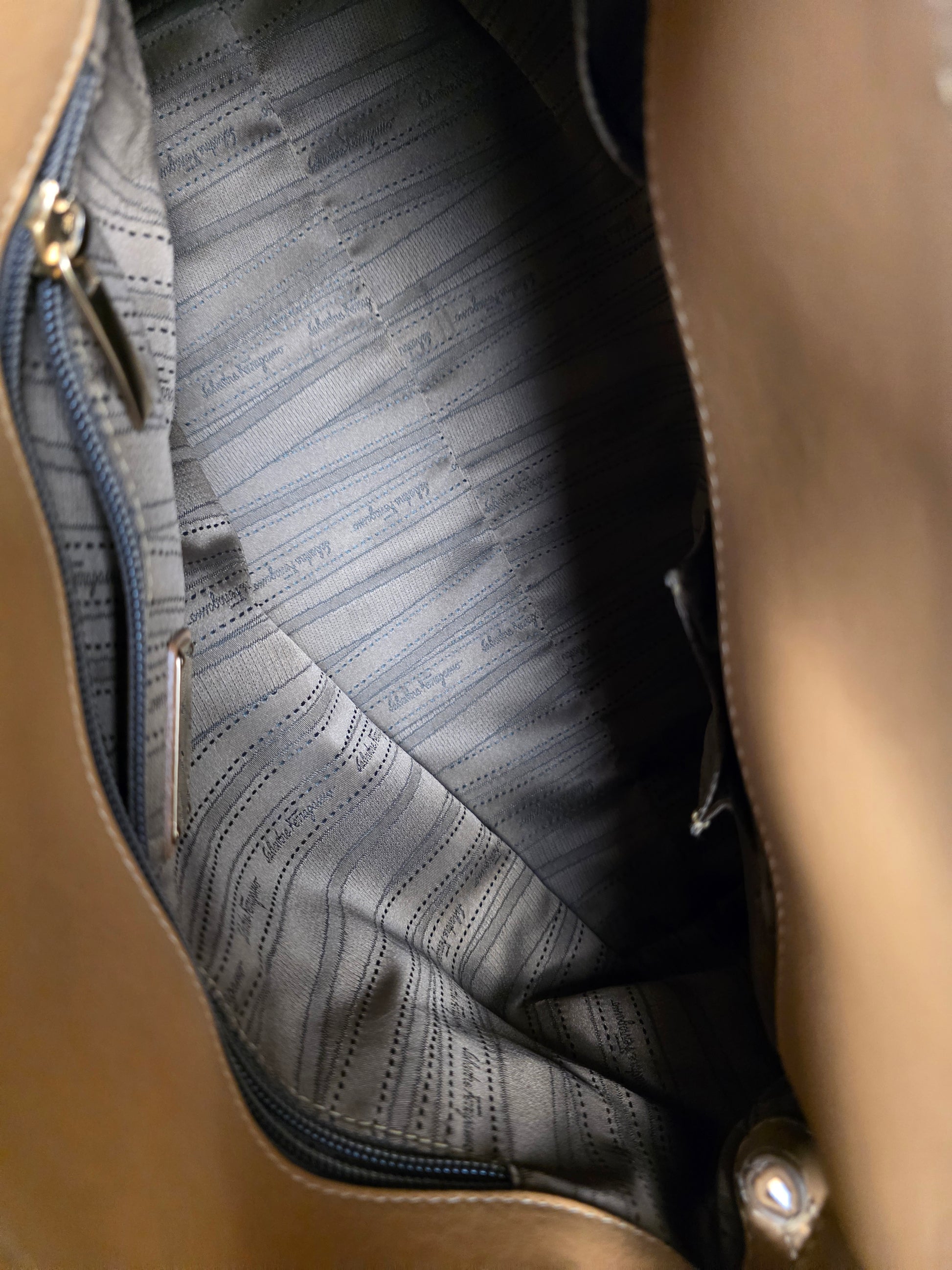Ferragamo Brown Gancini Top Handle Bag with Shoulder Strap