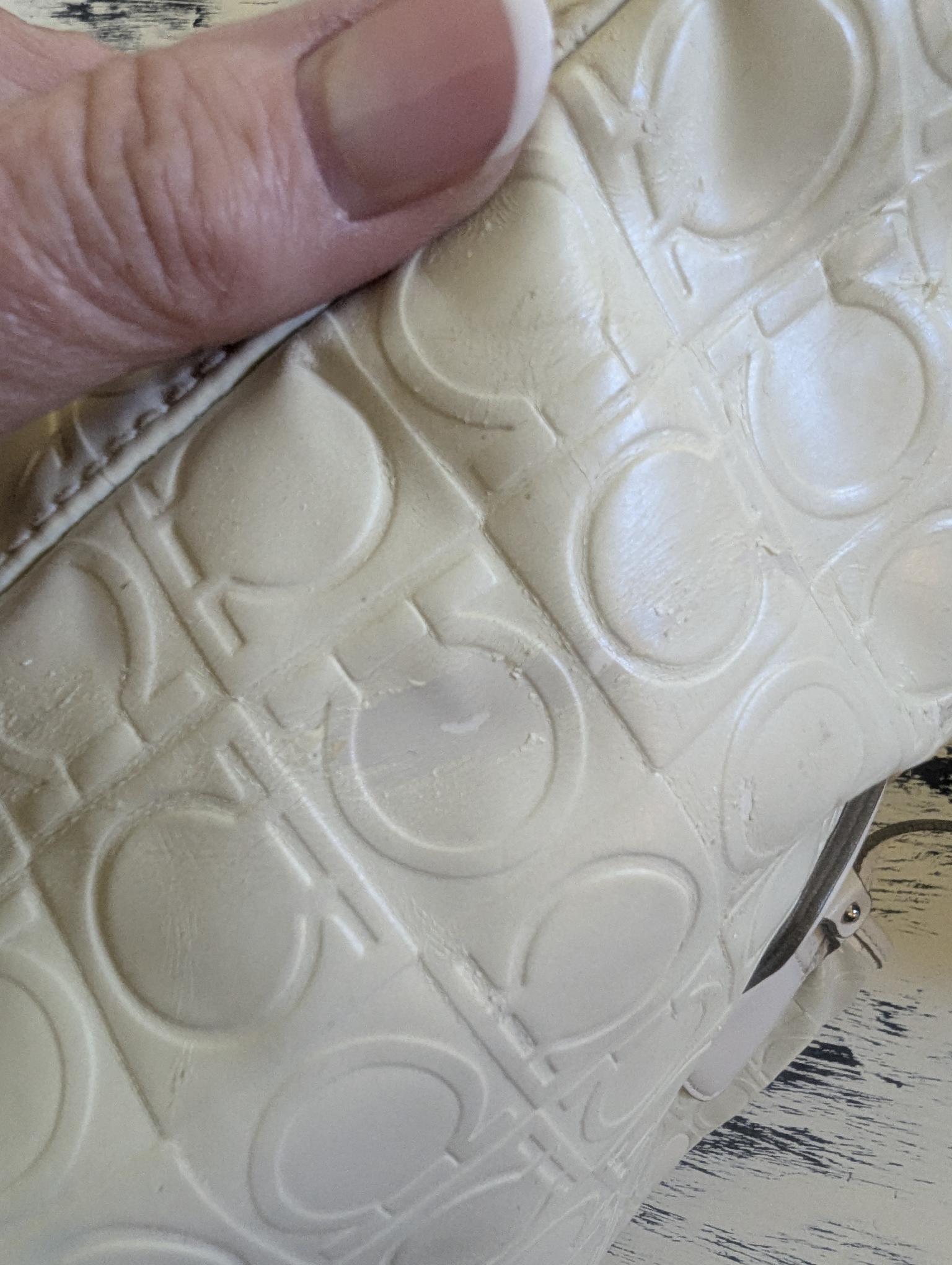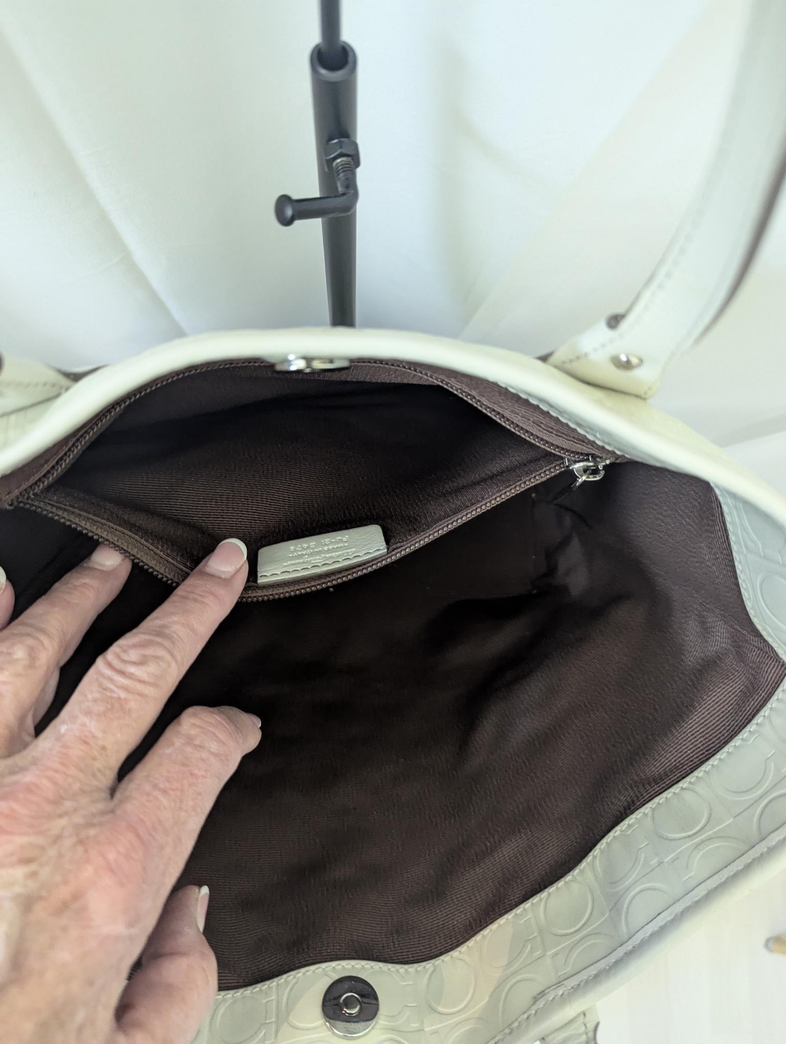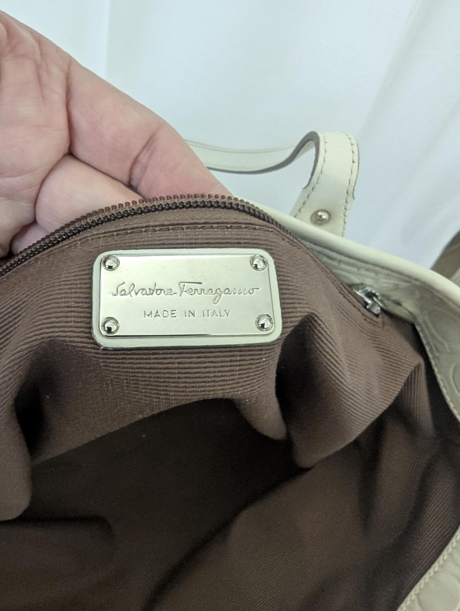 Ferragamo Gancini Ivory Leather Embossed Tote