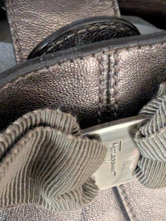 Ferragamo Vara Bow Metallic Leather Tote Bag