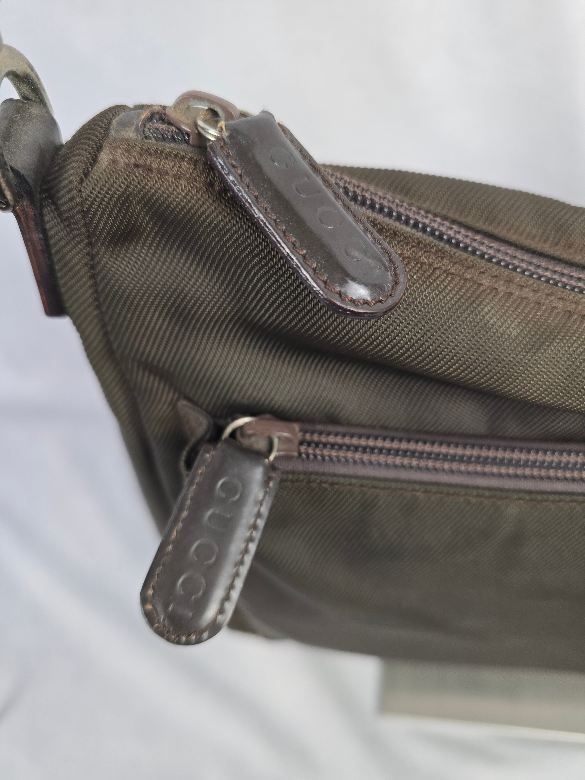 Overall very good condition with minor fading in the nylon and signs of use on the shoulder strap. Clean interior. Please see all photos.