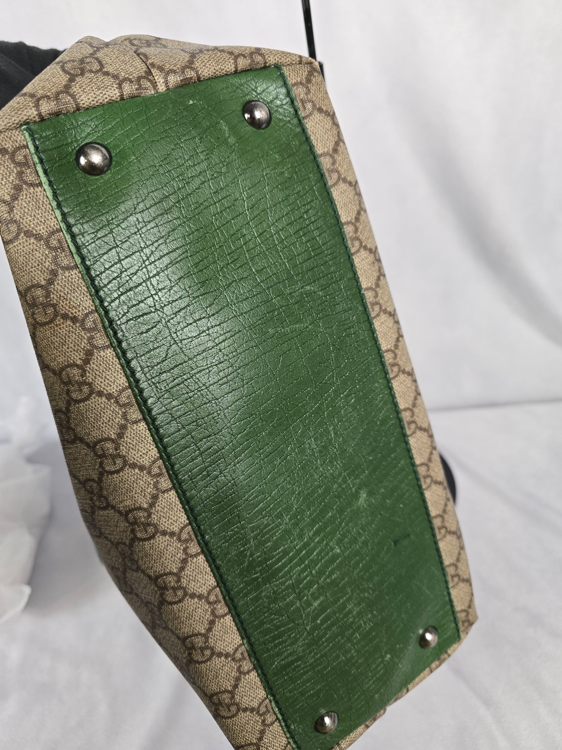 Gucci Supreme Monogram Tote with Green Leather Handles and Trim