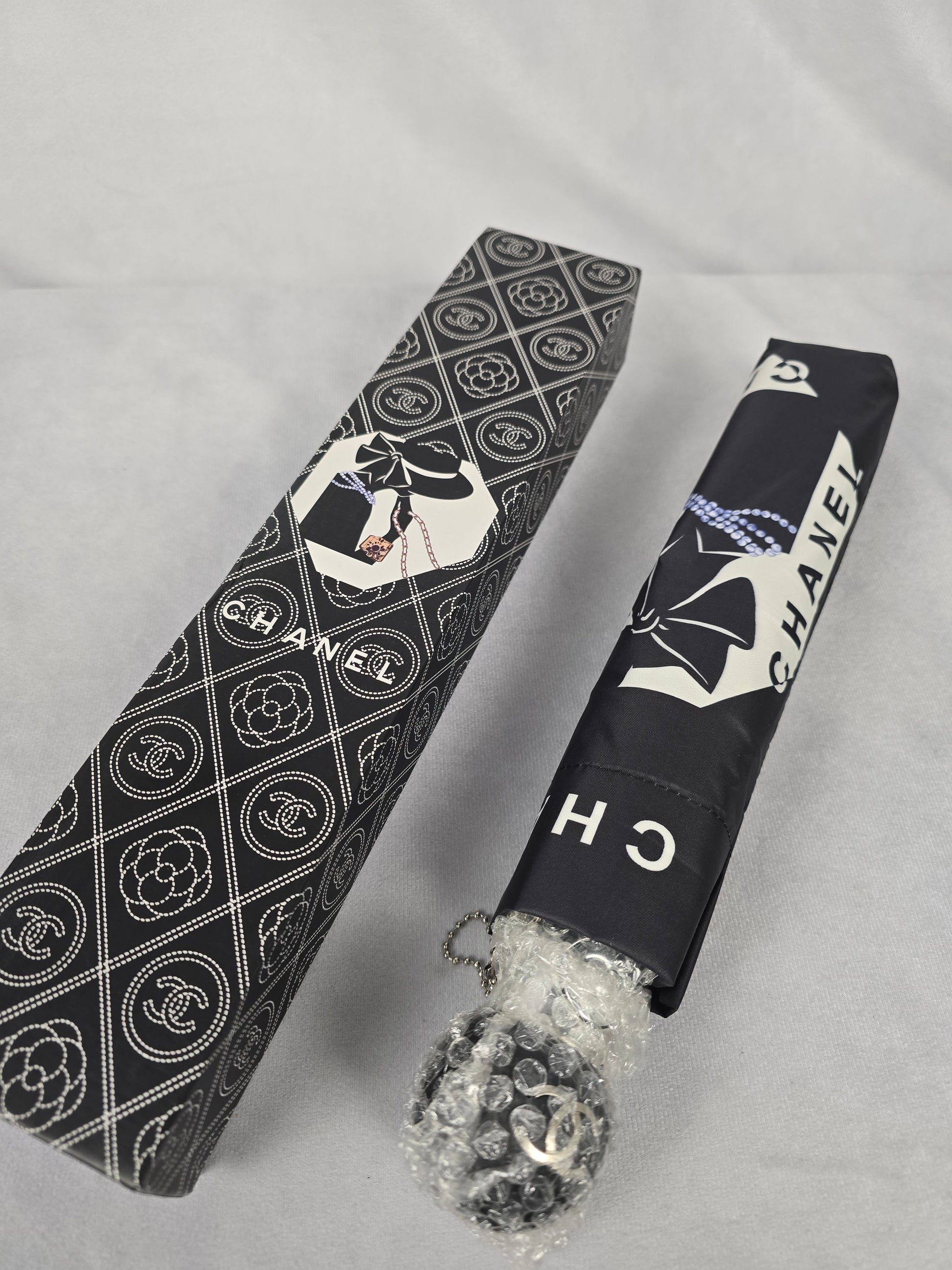 Stunning GWP Chanel Large umbrella with sleeve. VIP gift item - NEW. Image on the umbrella is on the box with the lady in the black hat.