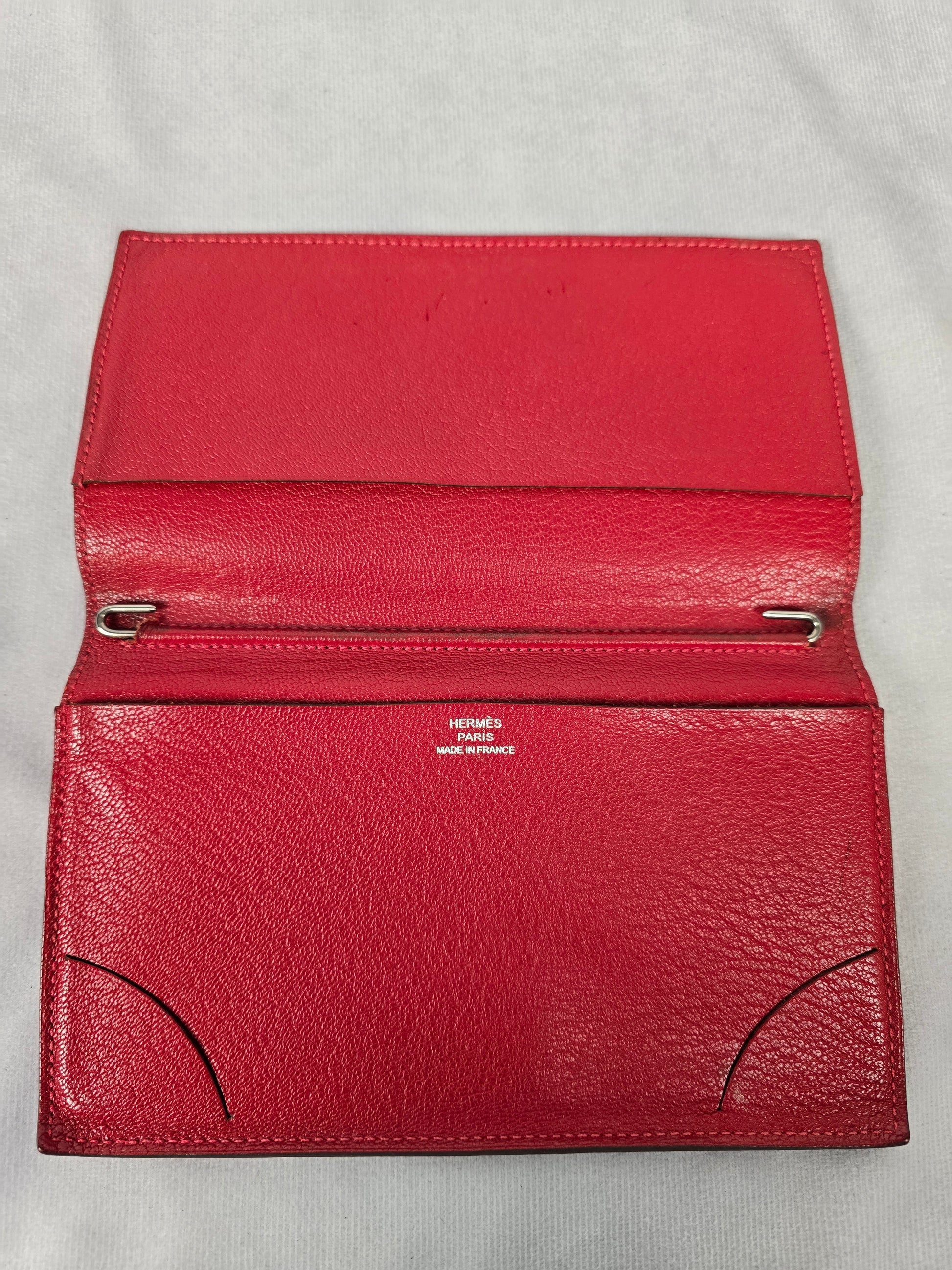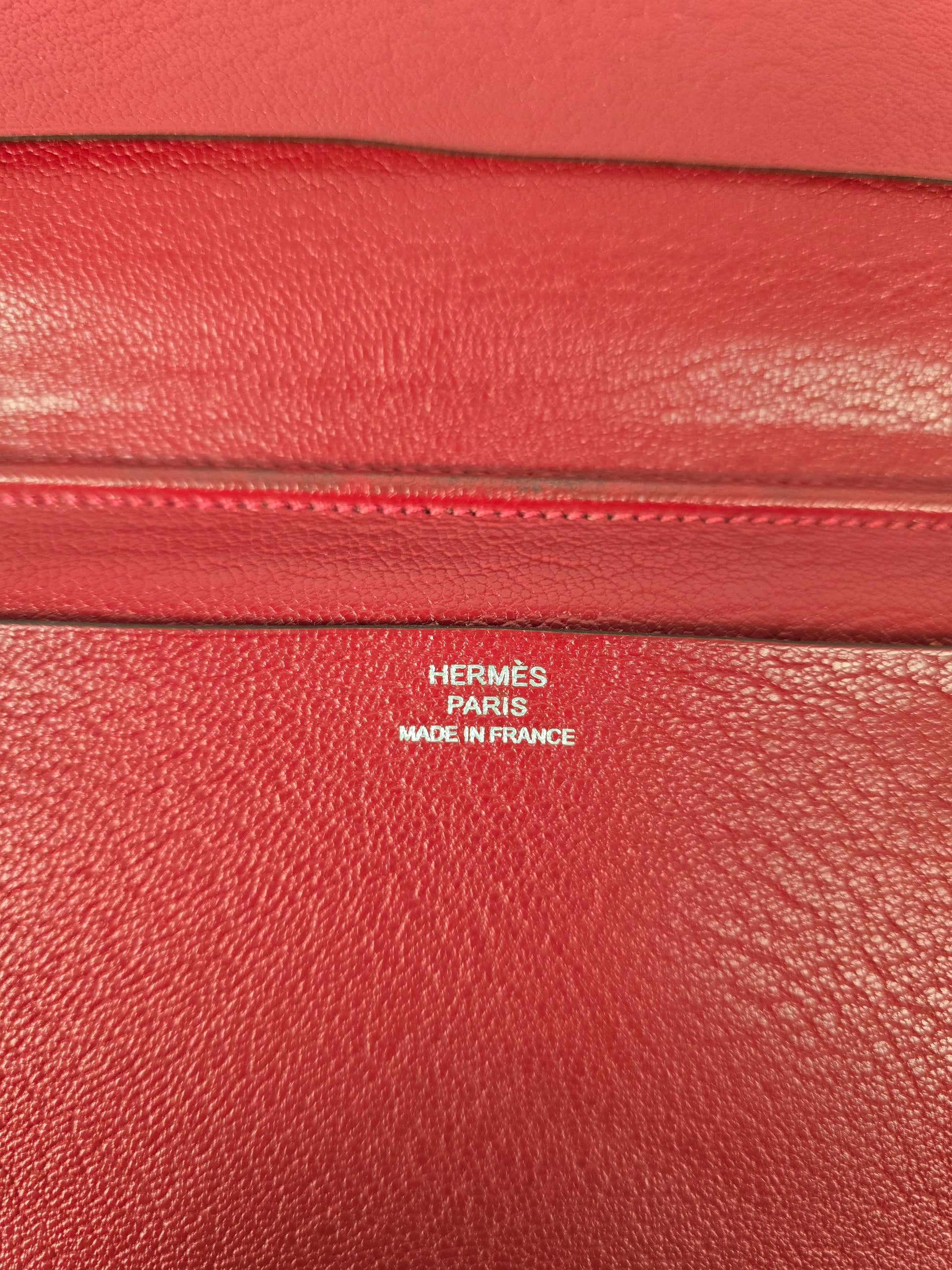 Hermes Vision II Simple Agenda Cover in red calfskin leather. Features a hook for a refill if used as agenda and two interior pockets. Compatible with Vision annual lined and blank agenda refills. In good condition.
