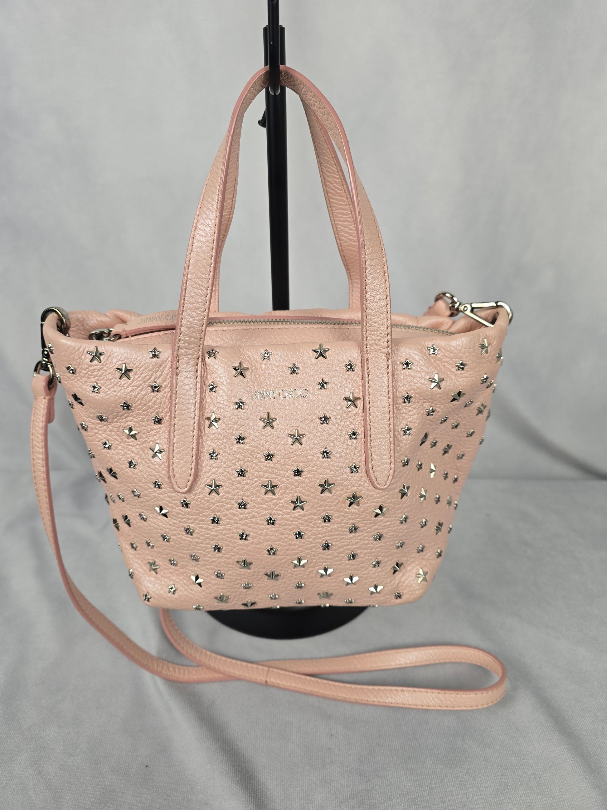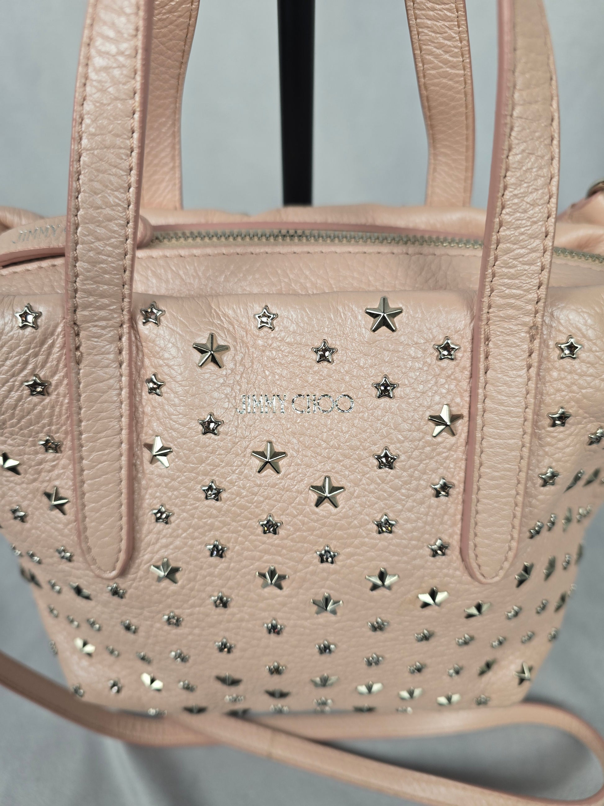This Jimmy Choo is gorgeous! The pink leather shimmers with the star stud embellishments. In very good condition!