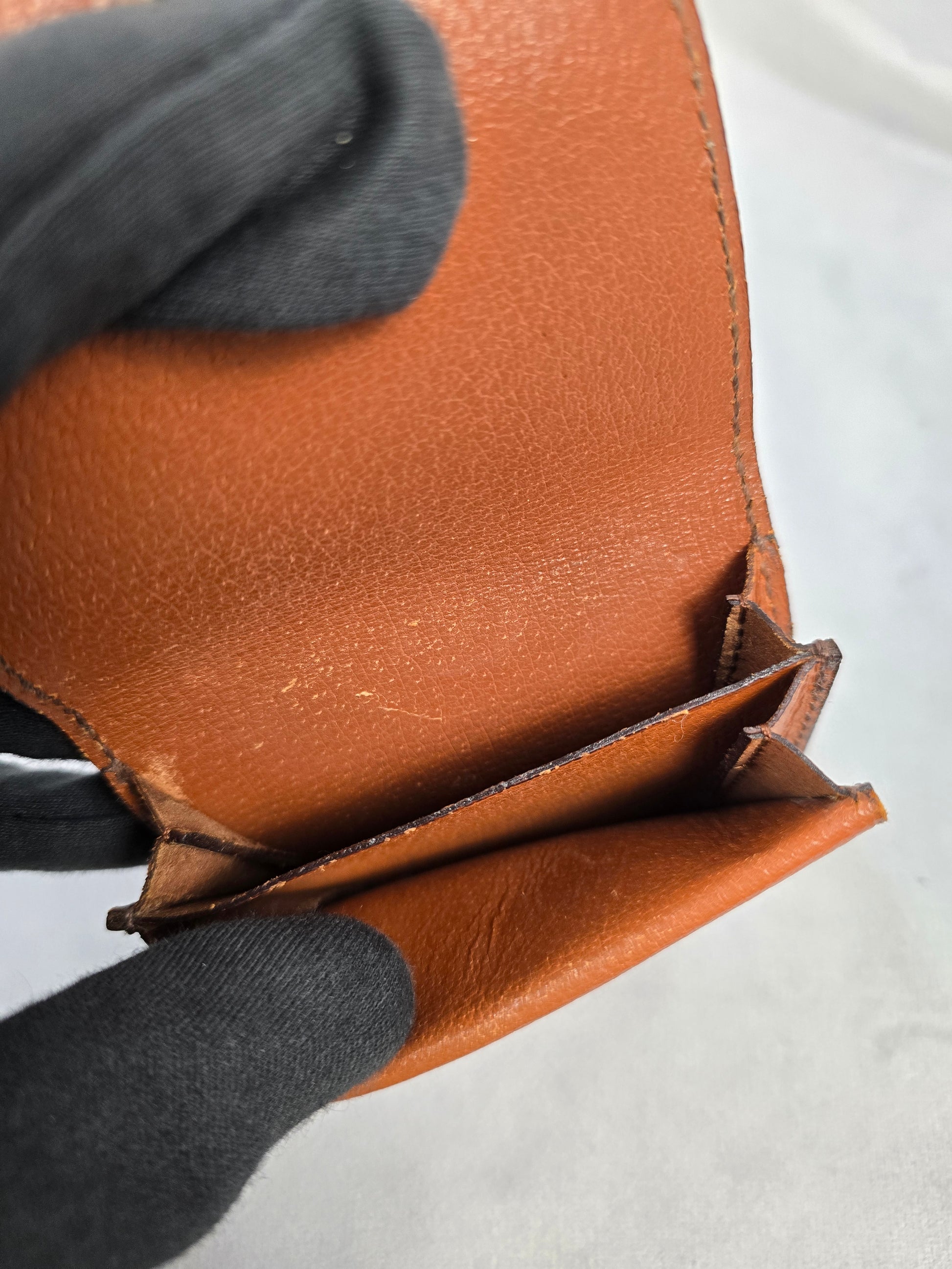LV Monogram Grousset coin purse monogram coated canvas with a snap fastening. Interior features 3 compartments - one with a flap for organizing coins or small essential. Very good condition for the age - no peeling on the interior with some scratches signs of use. Exterior has no callouts.