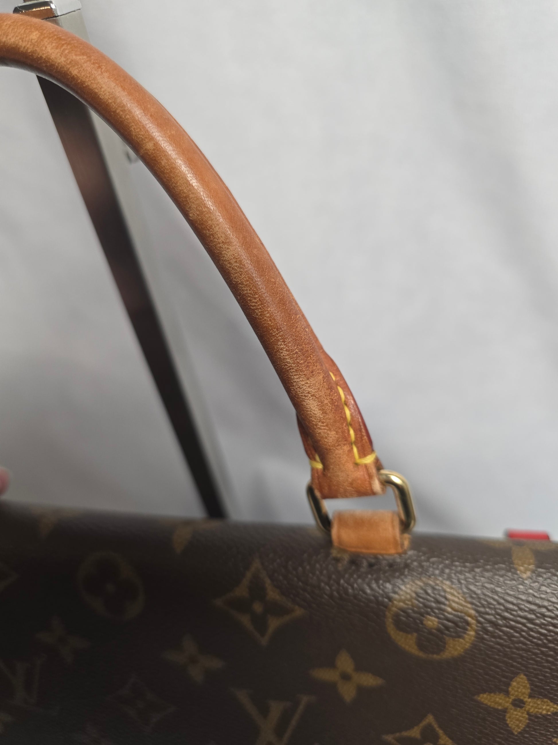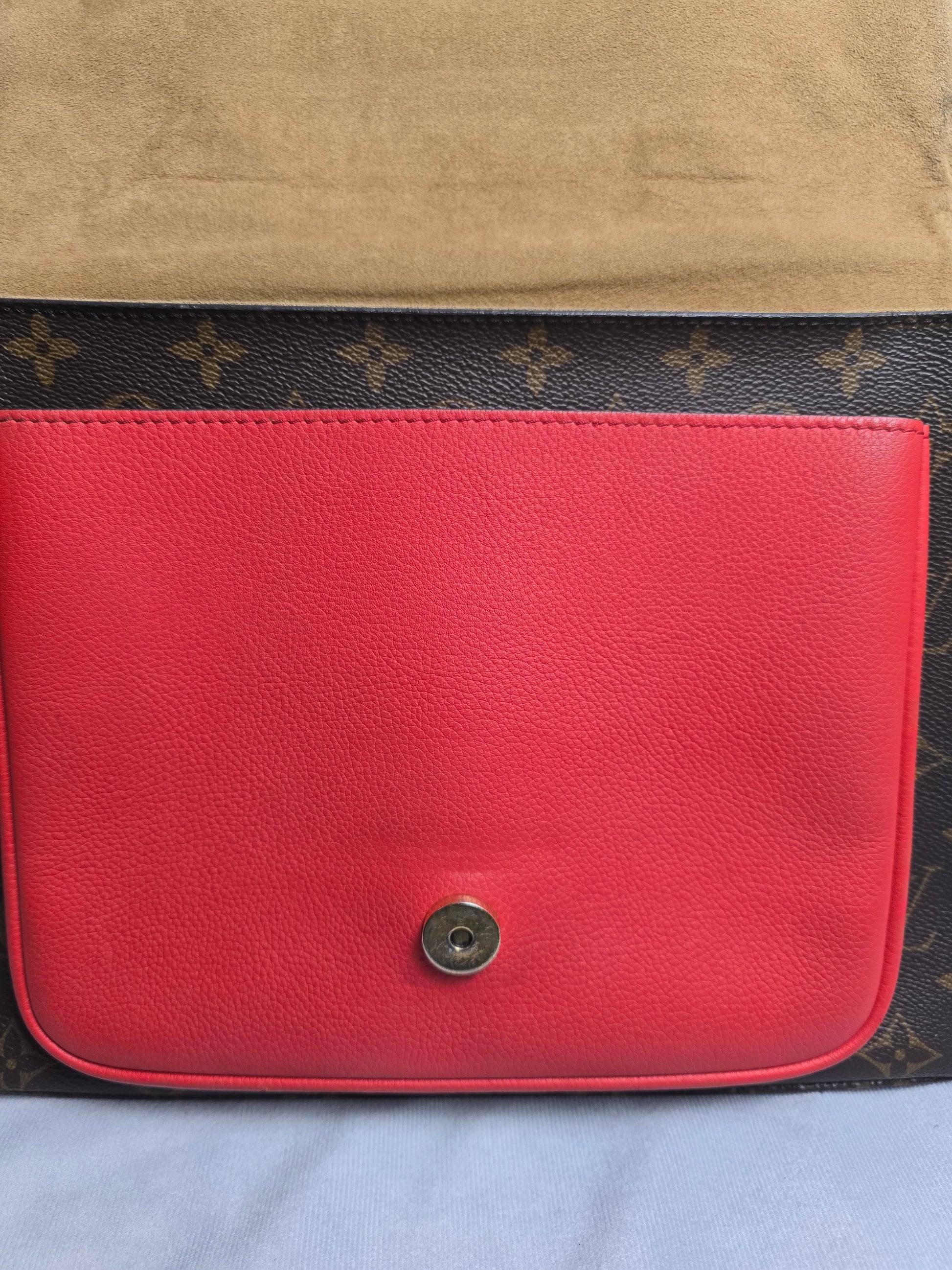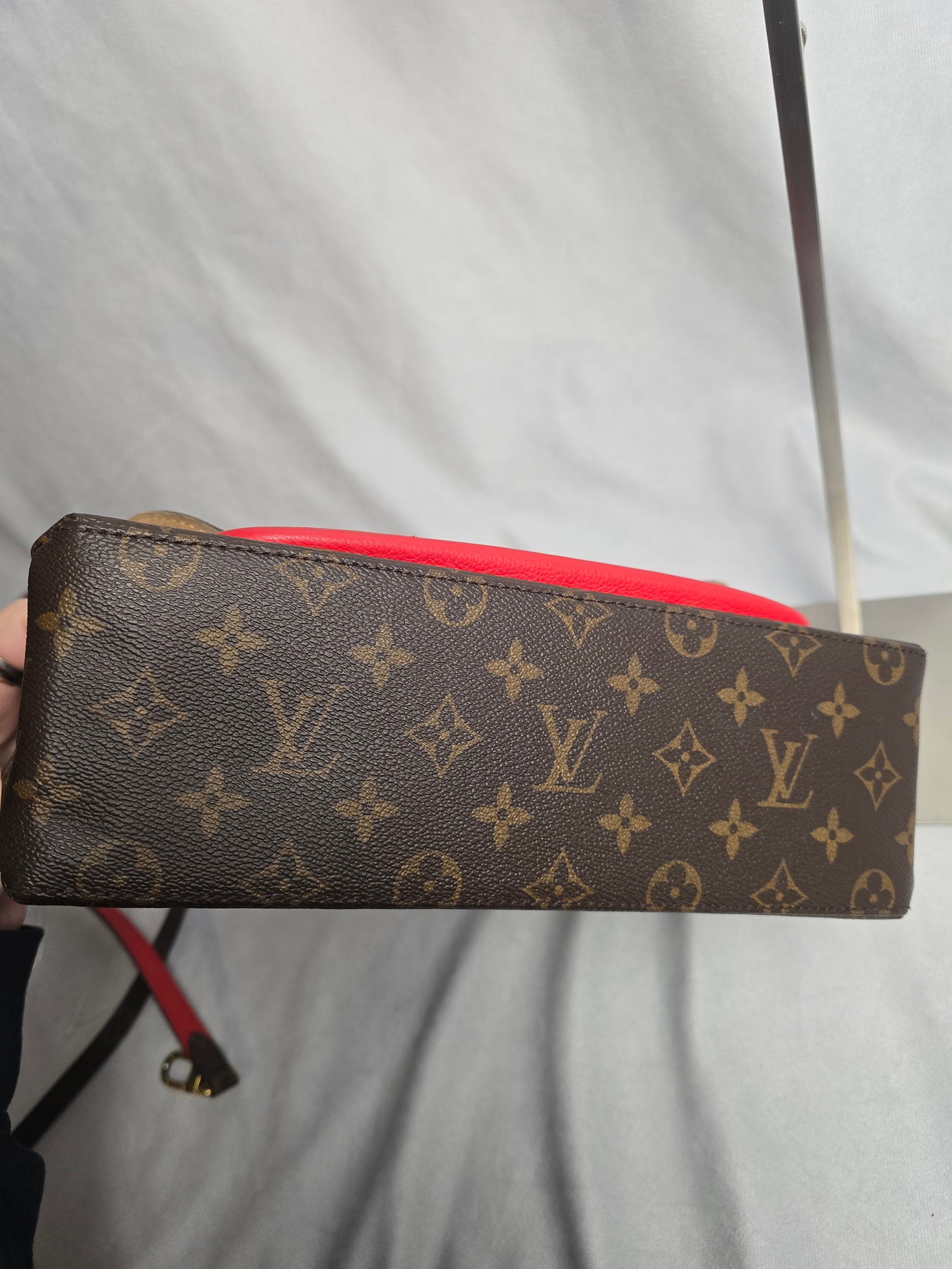 Gorgeous LV Marignan Bag is a new model. Vachetta Top handle and adjustable monogram/red shoulder strap complement the monogram canvas bag with red grain leather and the iconic padlock. Great everyday bag.