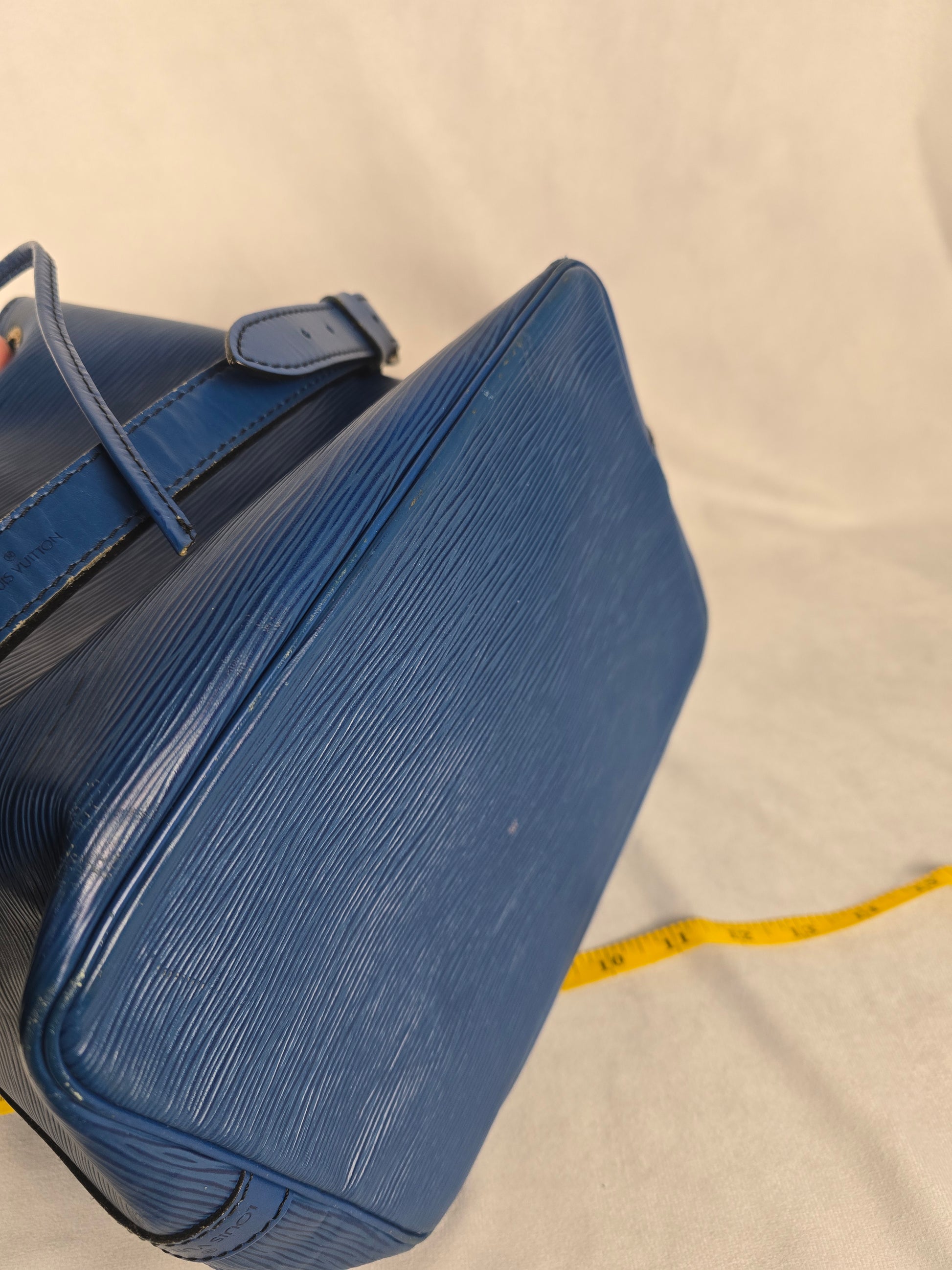 This vintage LV blue Epi Noe bag is in Very Good pre-owned condition. In a beautiful vibrant blue with plenty of room. There is a stain in the bottom of the bag that has been cleaned but visible. This bag comes with a custom-made purse liner for easy bag changes.