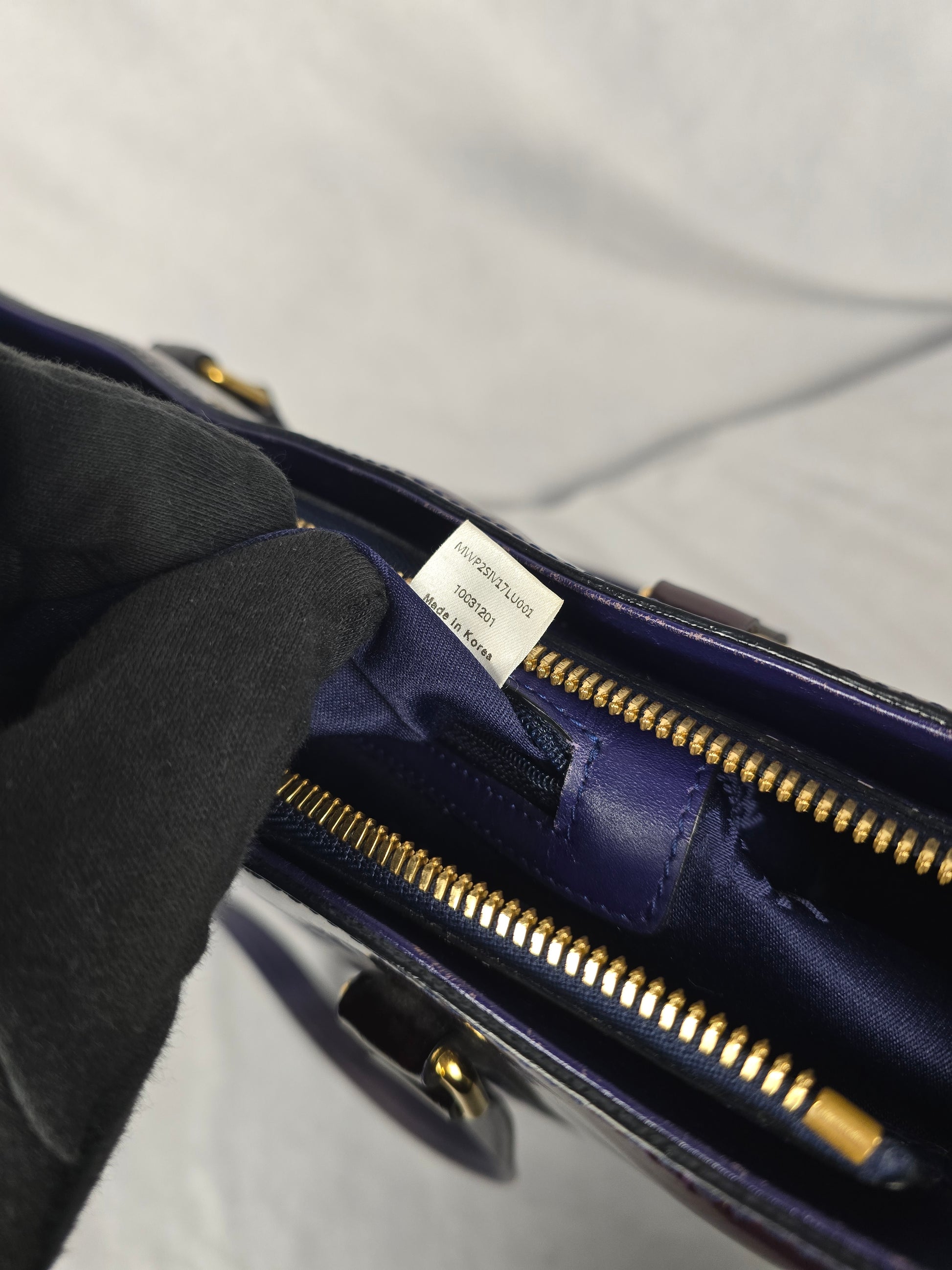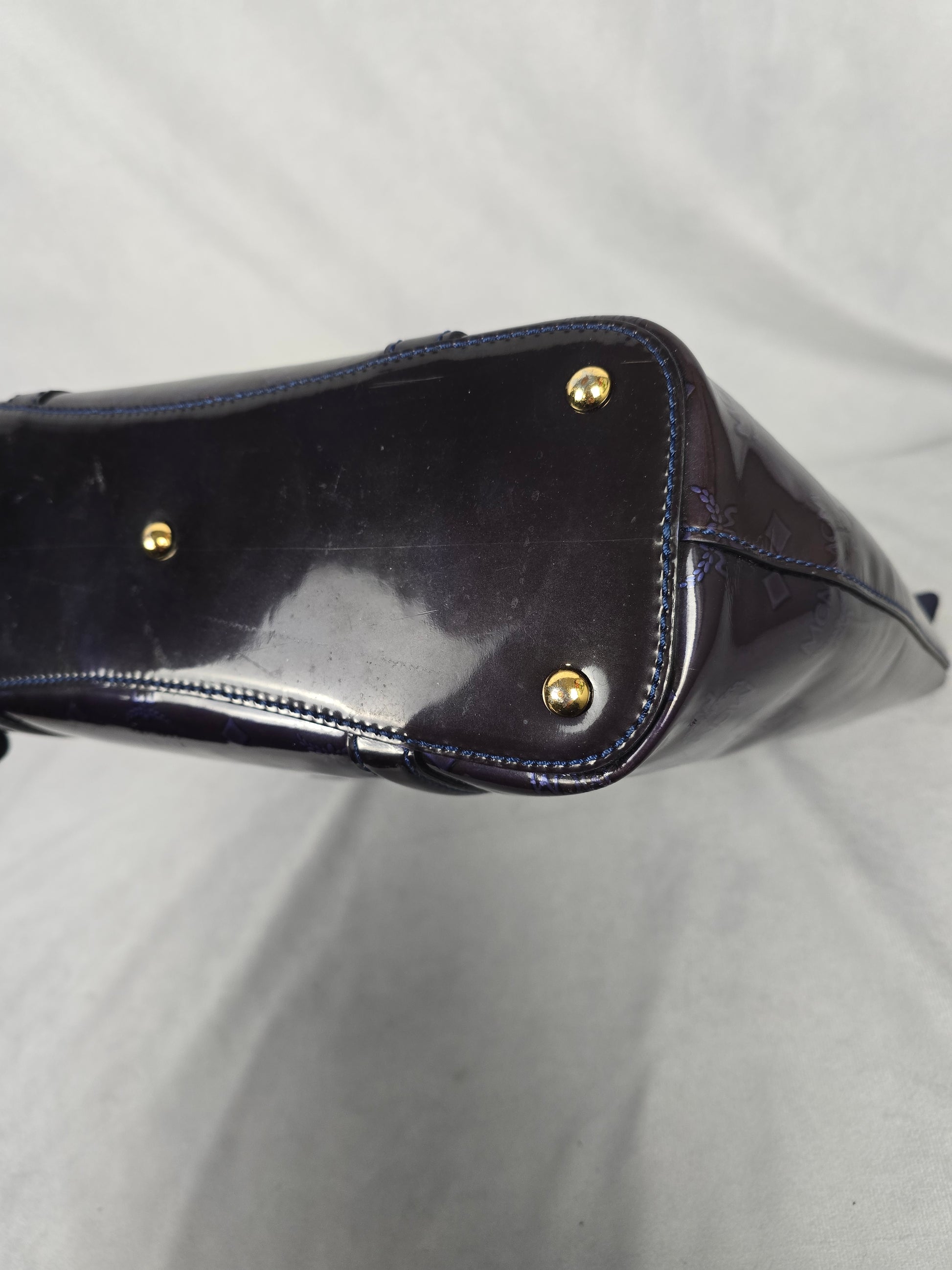 MCM Amarante Visetos Patten Leather Tote in a Brown/Purple