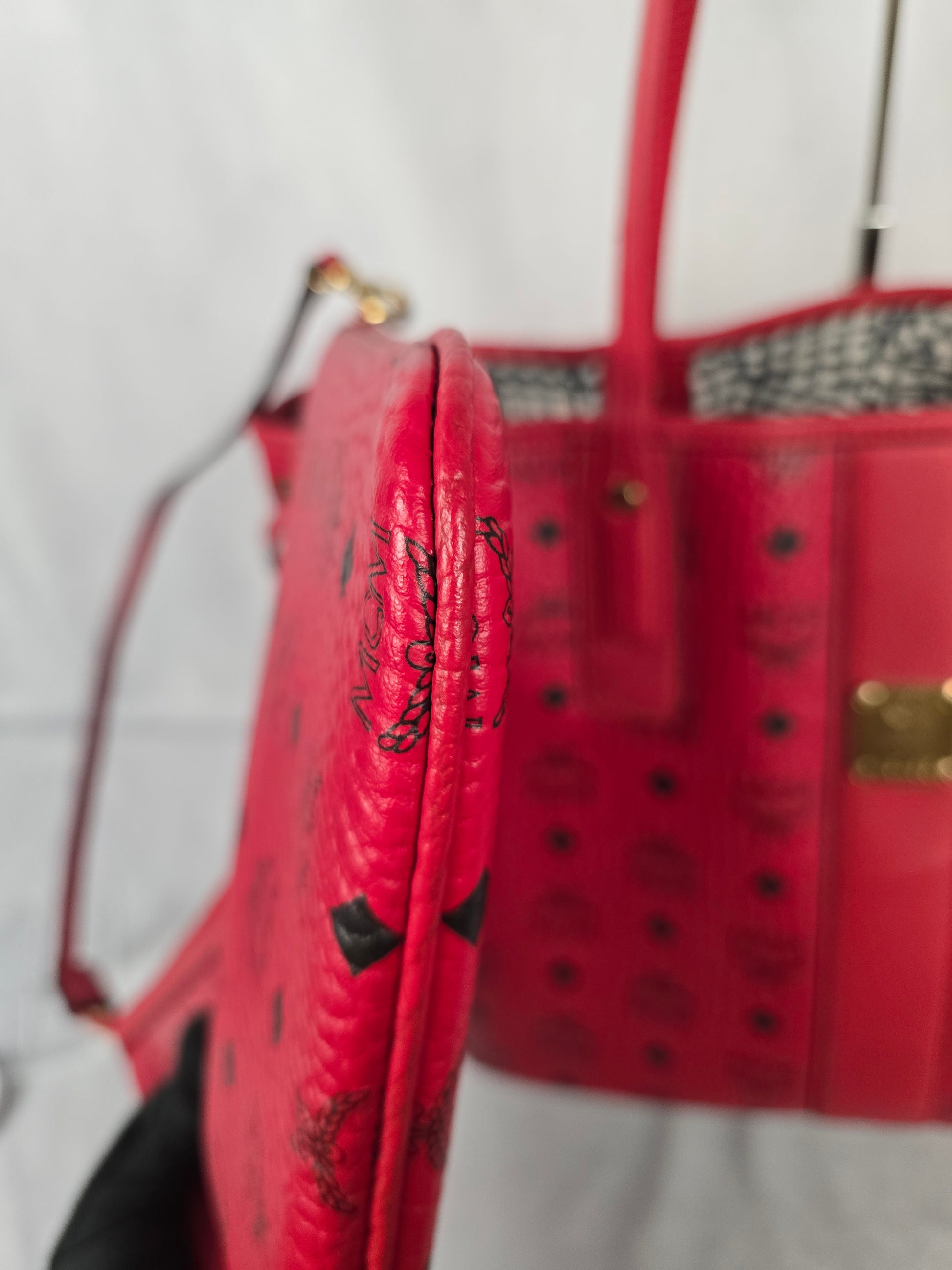 MCM Red Liz Medium Tote with Matching Small Purse