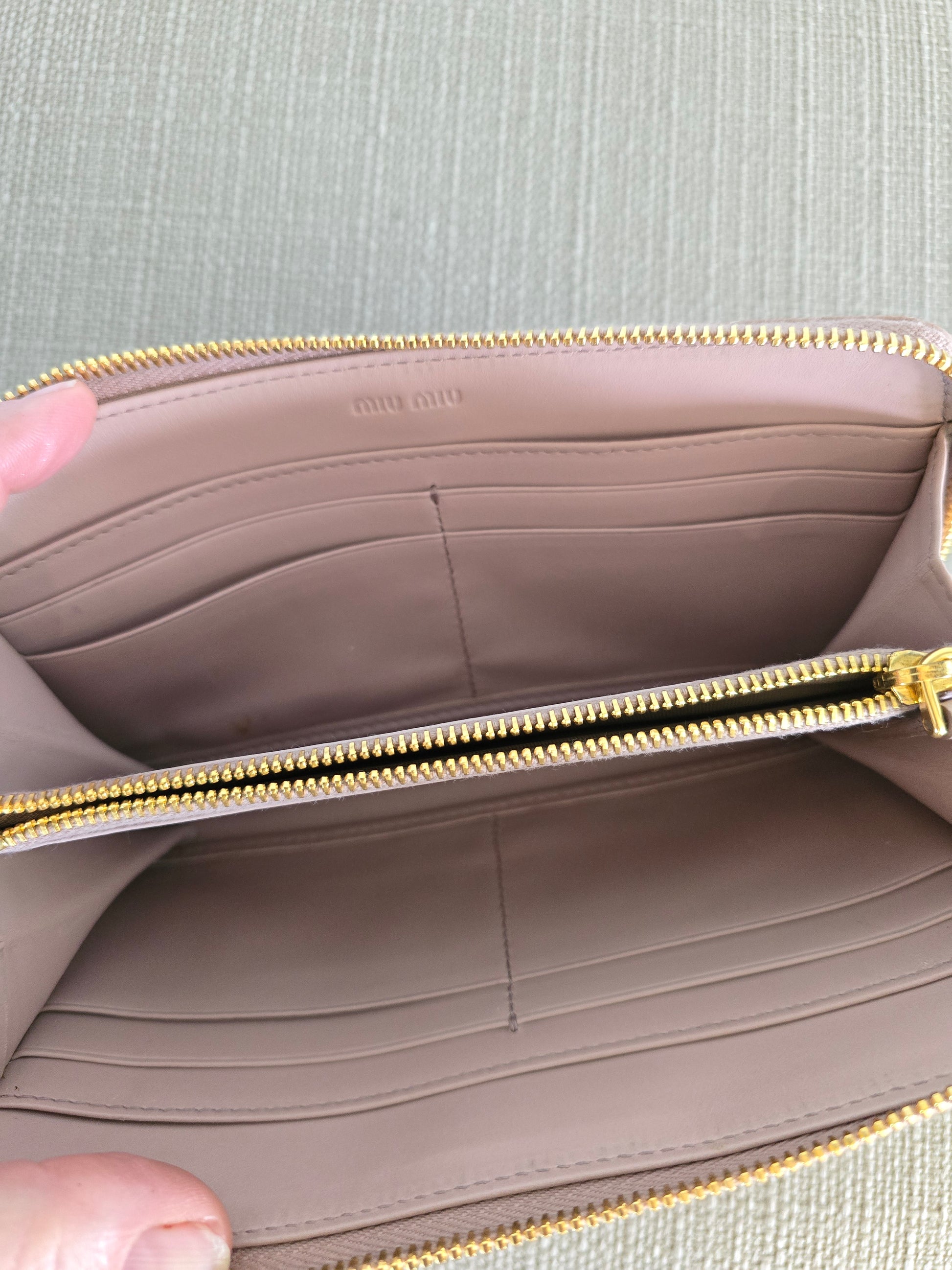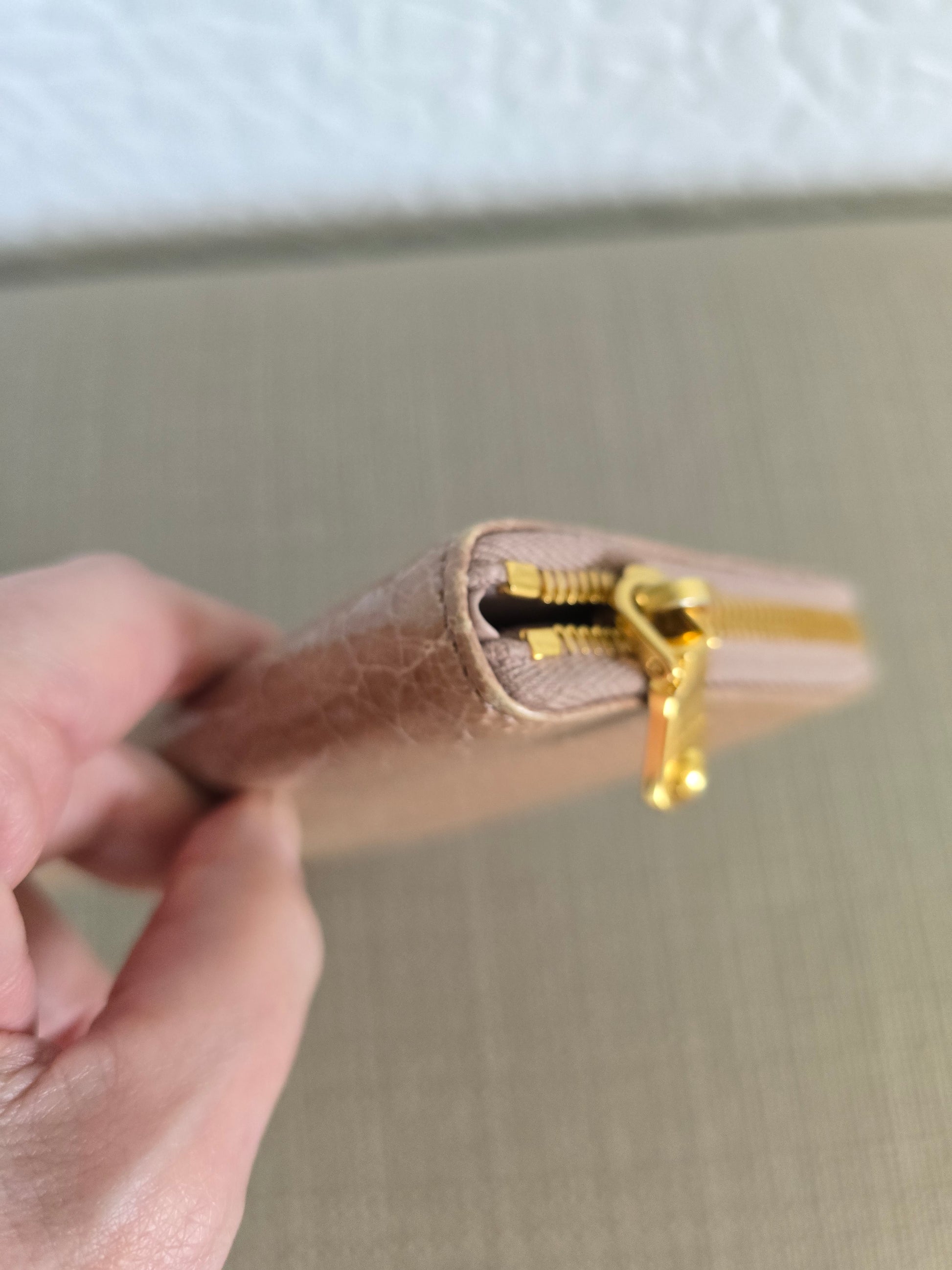 Miu Miu Croc Embossed Tan Leather Zipper Long Wallet