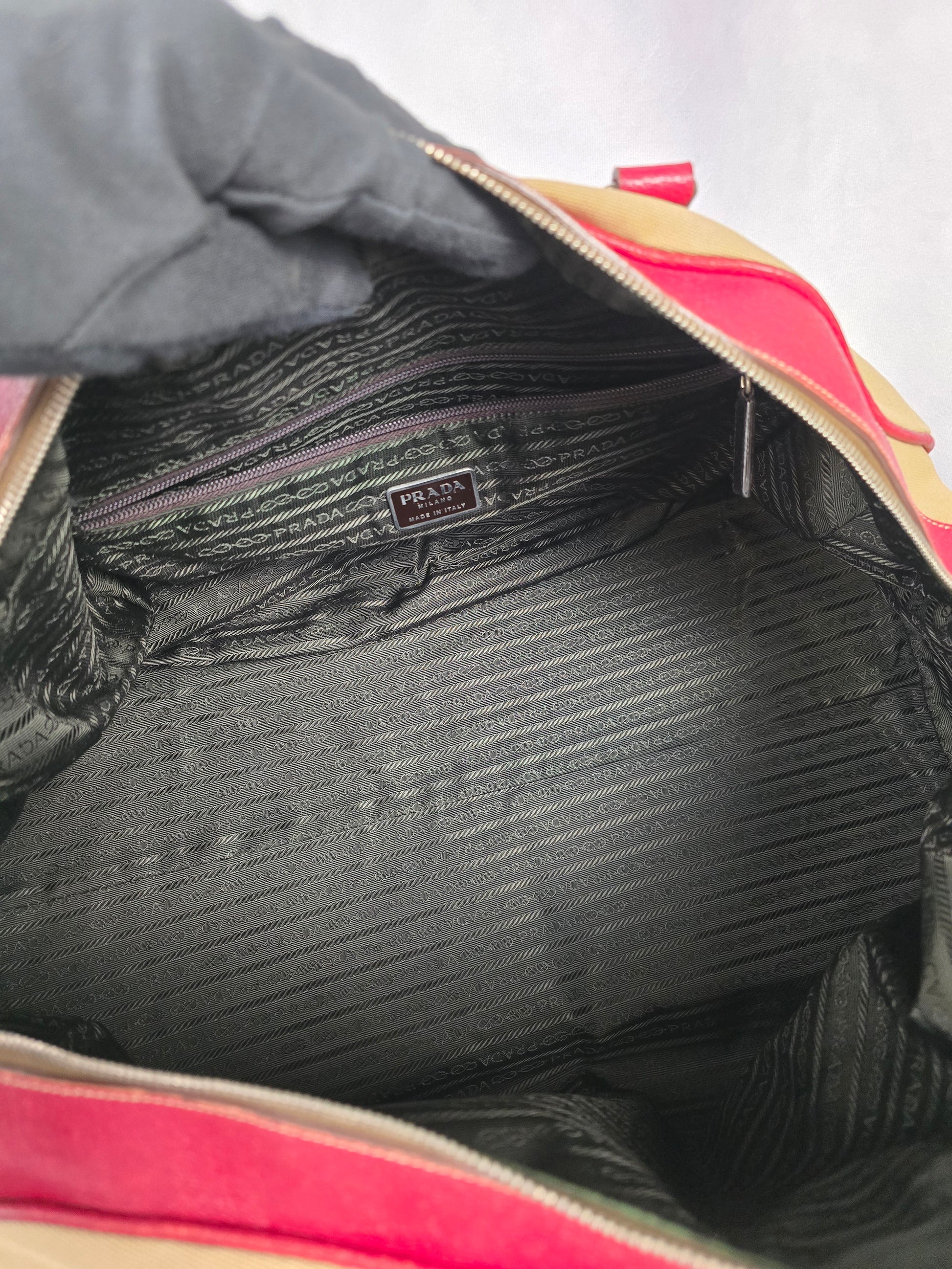 Travel in style with this Prada duffle bag! Very good pre-owned condition with Prada lock and key.