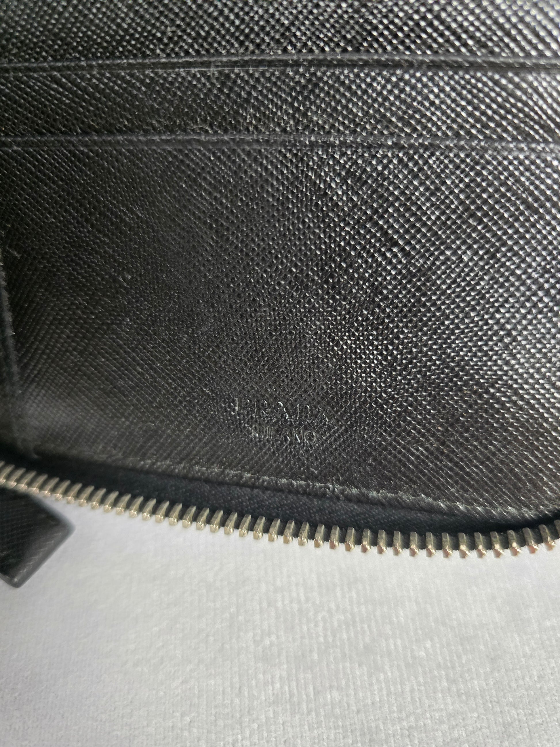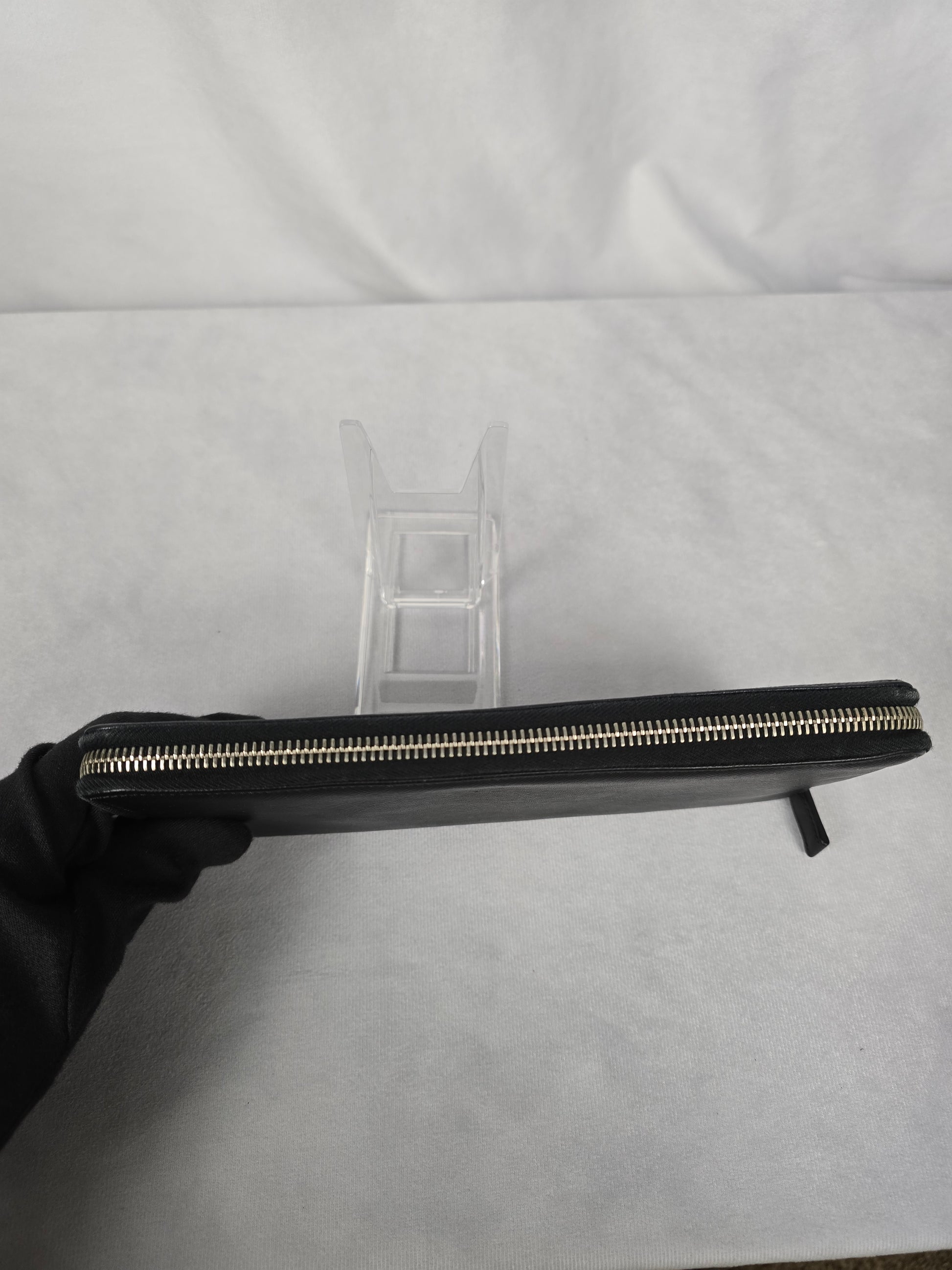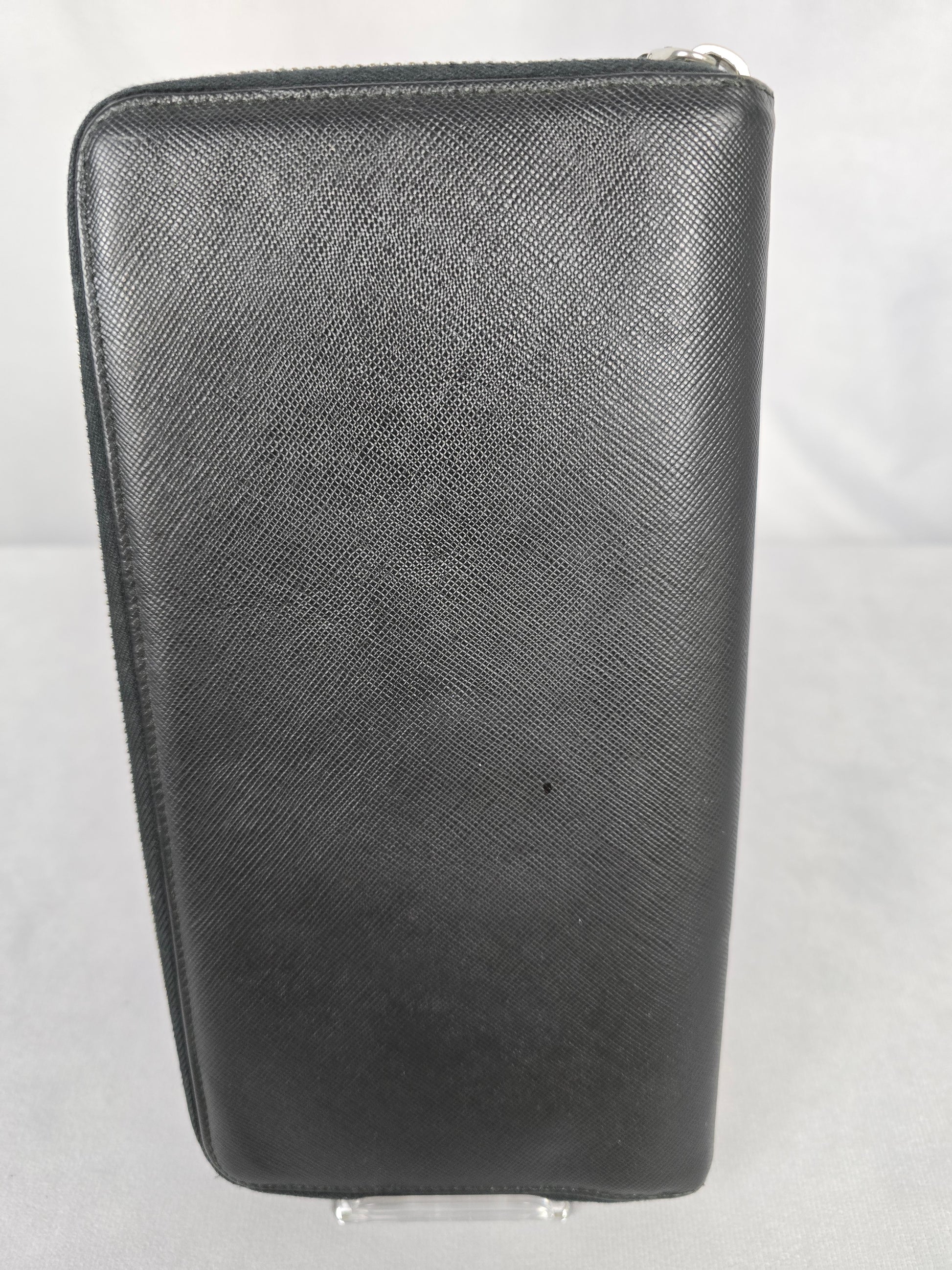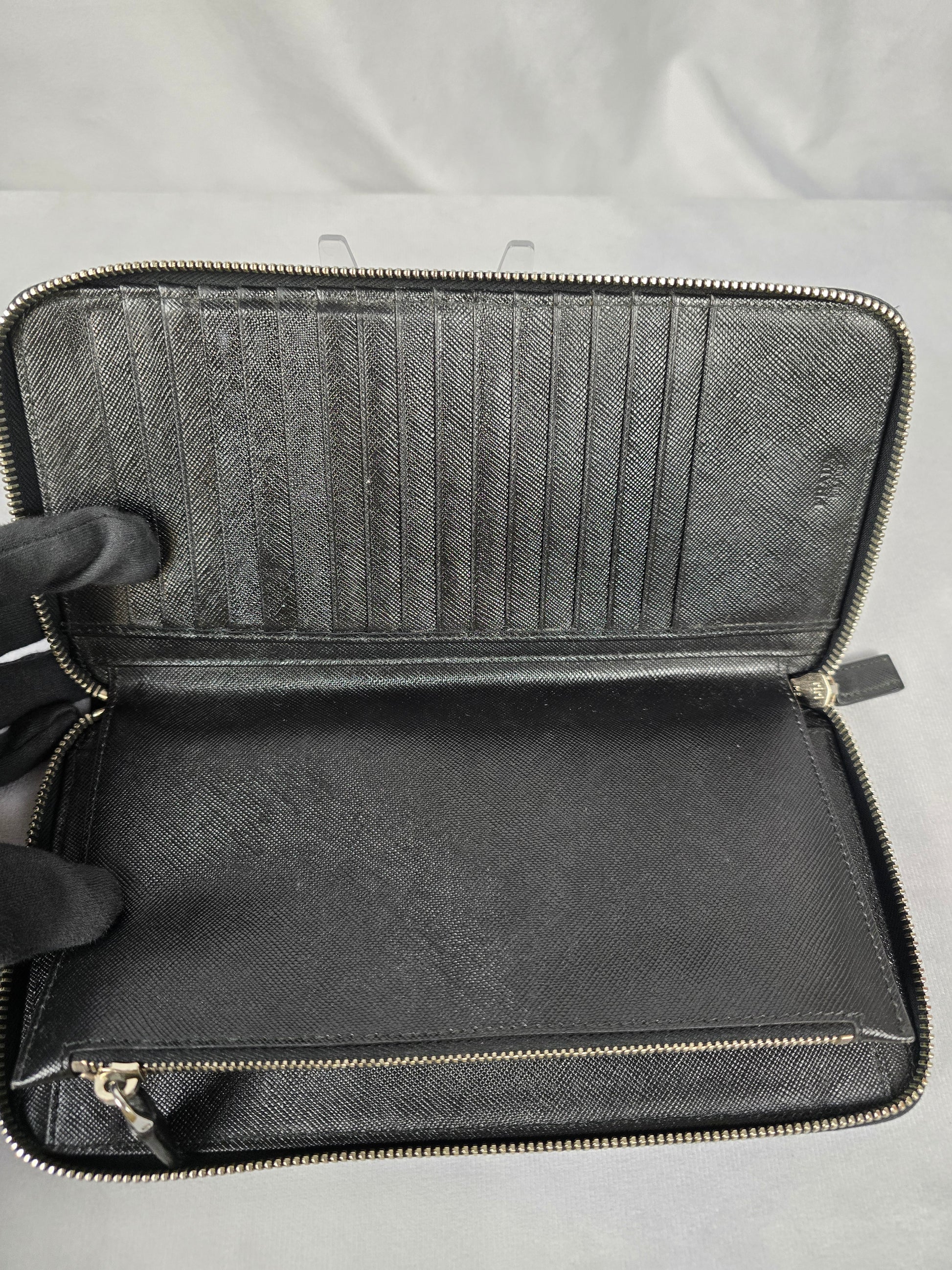 Prada Saffiano Black/Blue Leather Zip Around Organizer/Travel Wallet