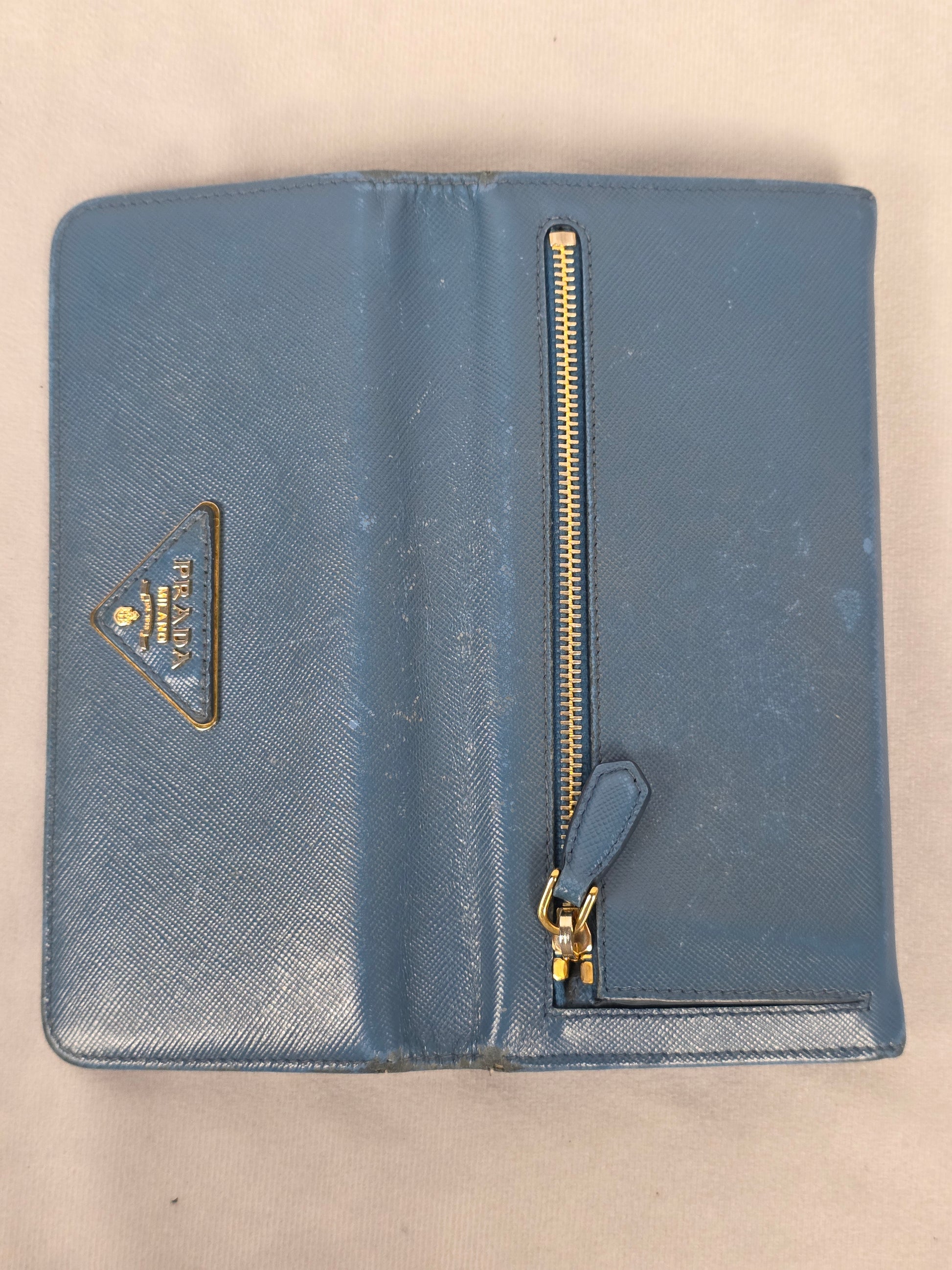 PRADA SAFFIANO BLUE FLAP CONTINENTAL WALLET