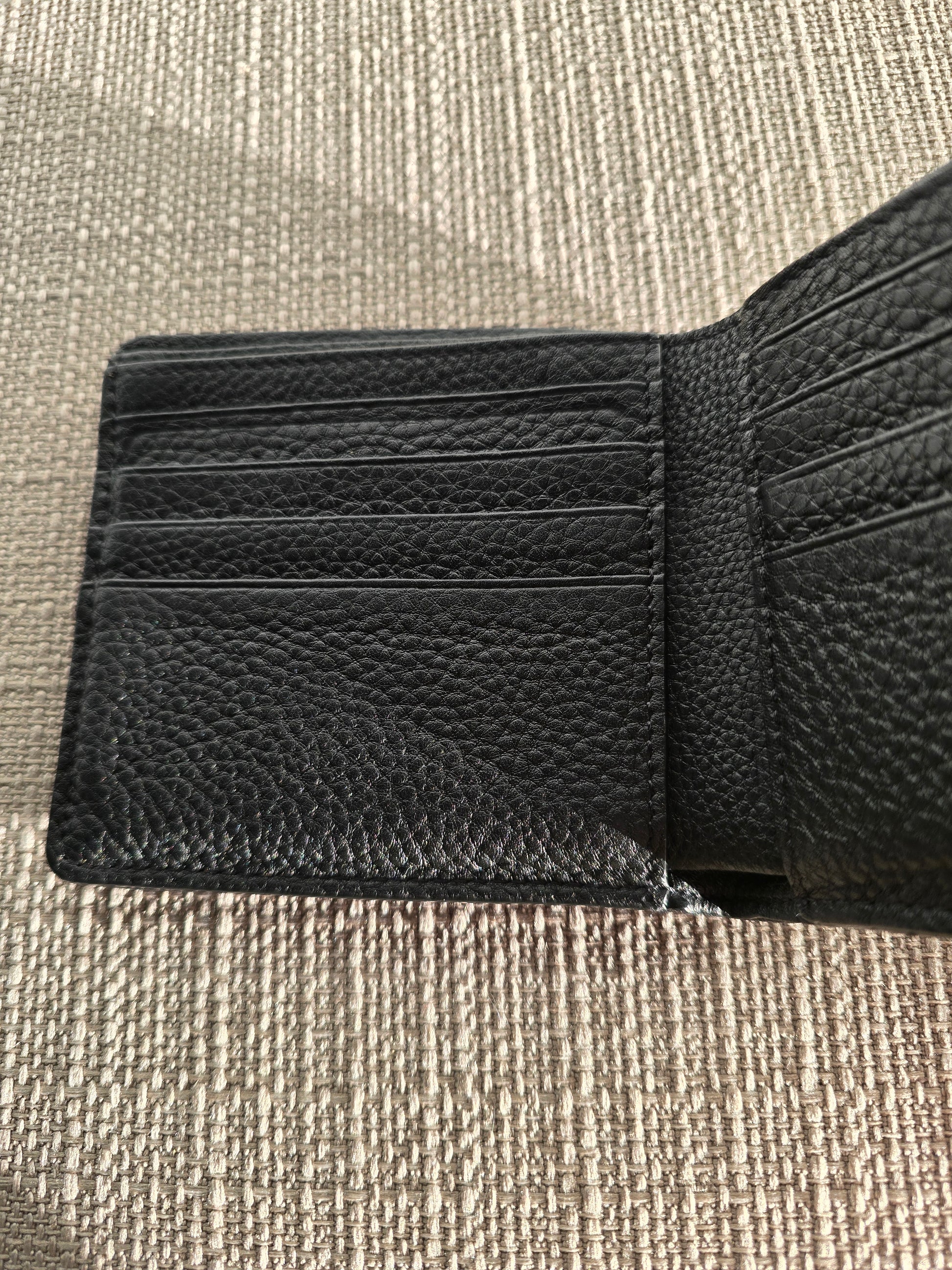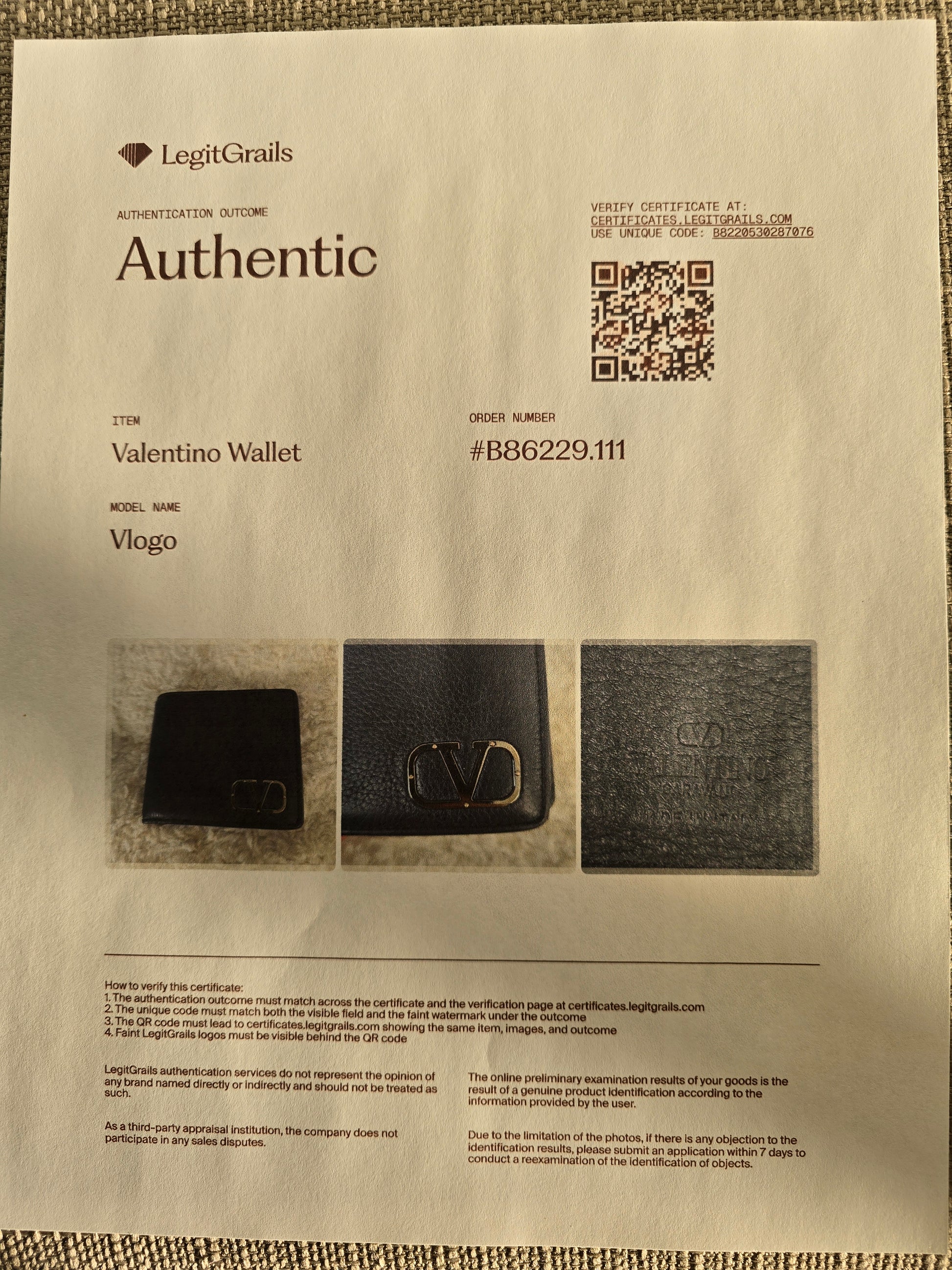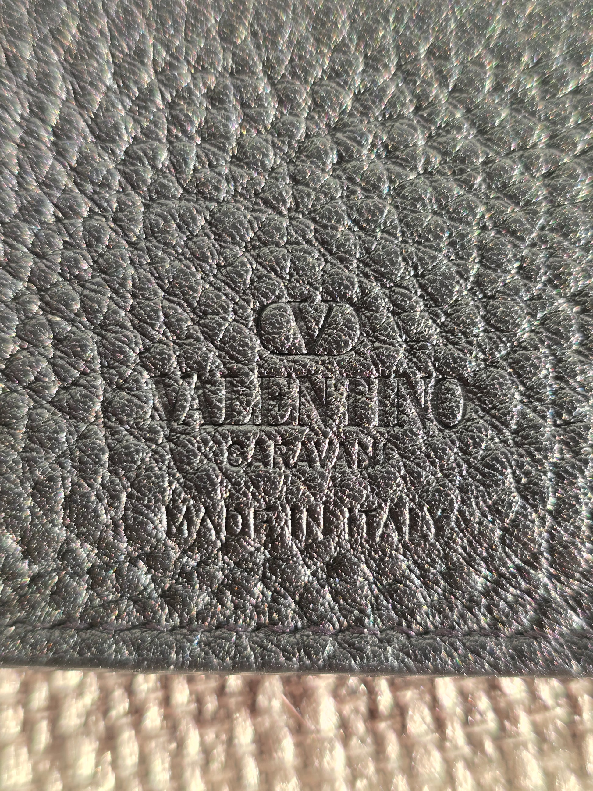Valentino black pebbled leather bifold wallet in very good condition. Plenty of pockets in the interior and the VLogo signature detail on the front in silver. Made in Italy. Approximately 4.3" wide and 3.25" tall. Comes with COA.