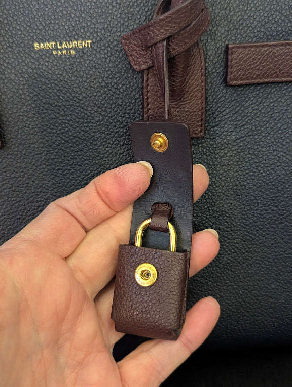 YSL Navy, Burgundy & Dark Green Leather Handbag with Removable Crossbody Strap