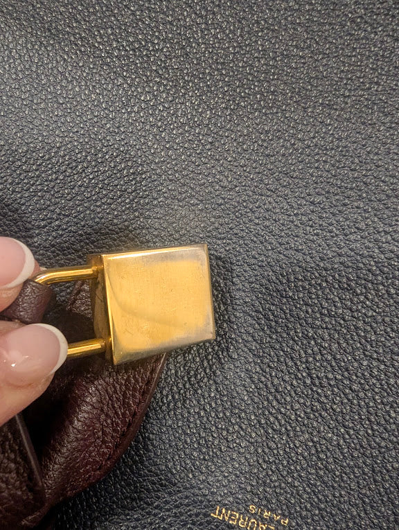 YSL Navy Burgundy Dark Green Handbag with Removable Crossbody Strap